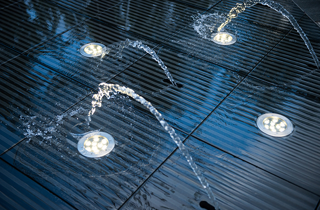 水本無形,它的物理特性讓它能輕易地跟隨容器而呈現(xiàn)不同的面貌。獨特的延展性使得水能呈現(xiàn)無以計數(shù)的不同效果。燈光的布置,介質(zhì)的紋理,顏色和動態(tài)都能給水帶來無窮的變化。